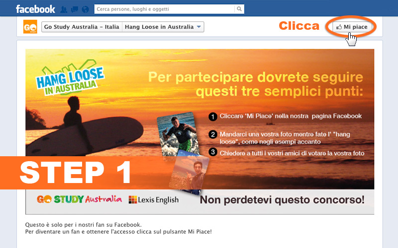 Metti Like alla pagina Go Study Australia - Italia e poi Vota la mia foto cliccando il pulsante blu! Push the button ;-)