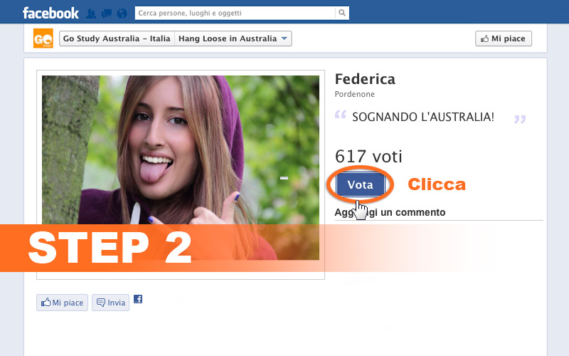 Metti Like alla pagina Go Study Australia - Italia e poi Vota la mia foto cliccando il pulsante blu! Push the button ;-)